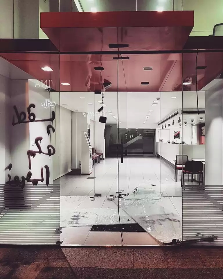 قام مثيرو شغب حوالي الساعة 19.00 من تاريخ 14/1/2020 بالاعتداء على عناصر قوى الأمن الداخلي المتمركزين أمام مصرف لبنان المركزي برمي الحجارة والمفرقعات وتوجيه الشتائم -أصيب عدد من العناصر بكسور ورضوض-، وعمدوا الى إزالة العوائق الخشبية وتكسير غرفة الحراسة، محاولين الدخول باتجاه المصرف، فجرى ردعهم.