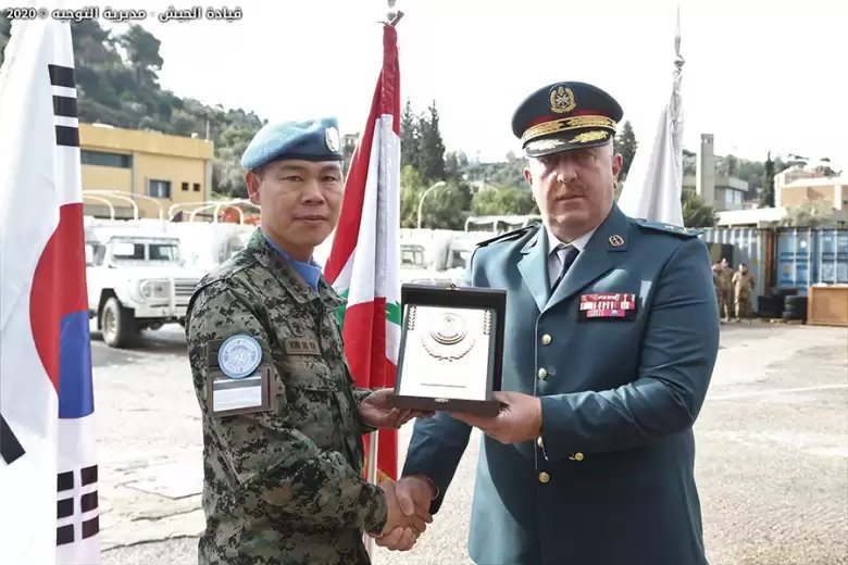 أقيم قبل ظهر اليوم في اللواء اللوجستي – ثكنة يوسف الأسطا - كفرشيما، حفل تسلّم خمس عشرة آلية مقدم هبة من السلطات الكورية للجيش اللبناني، بحضور العميد الركن ابراهيم عبود قائد اللواء اللوجستي ممثلاً قائد الجيش العماد جوزاف عون وقائد الكتيبة الكورية العاملة ضمن قوات الأمم المتحدة المؤقتة في لبنان العقيد Kim DO_YEOL، إلى جانب عدد من الضباط. وألقى العقيد DO_YEOL كلمة بالمناسبة، أكّد فيها أهمية التعاون بين الجيشين، كما ألقى العميد الركن عبود كلمة جاء فيها: "لا بدّ لنا في هذه المناسبة من التنويه بالأداء المشرّف الذي قدّمته الوحدة الكورية العاملة ضمن قوات الأمم المتّحدة المؤقتة في لبنان، تطبيقاً للقرار 1701 ومندرجاته حيث يتحمّل عناصرها مصاعب البعد عن عائلاتهم من أجل مؤازرة الجيش اللبناني في الدفاع عن الوطن، والمساهمة في حماية أمنه واستقراره".