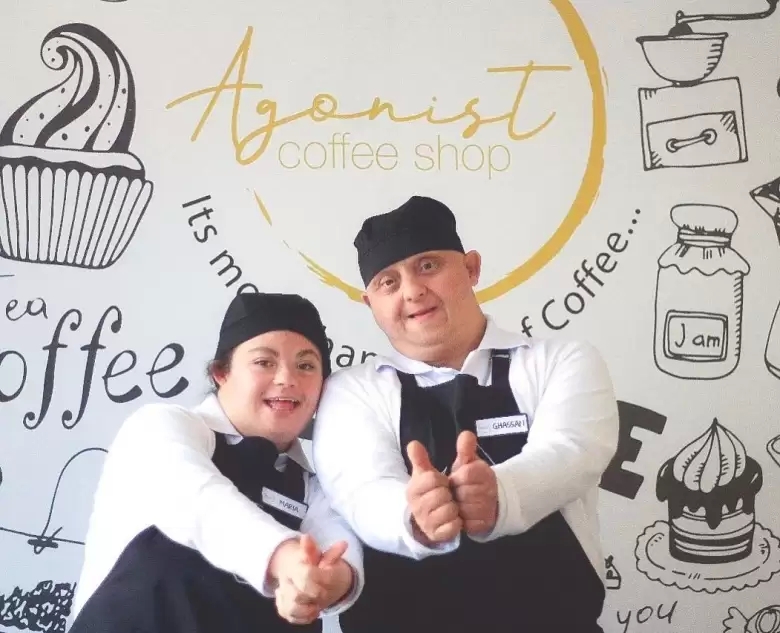 يتميز أحد المقاهي في منطقة الزلقا بموظفيه أصحاب الابتسامة العريضة من متلازمة "داون سيندروم" المعروفة بمتلازمة الحب.