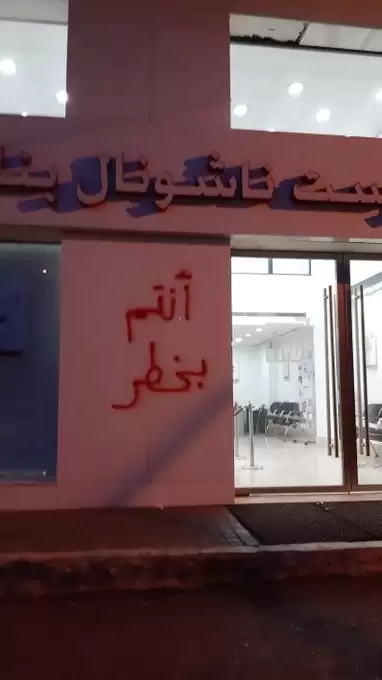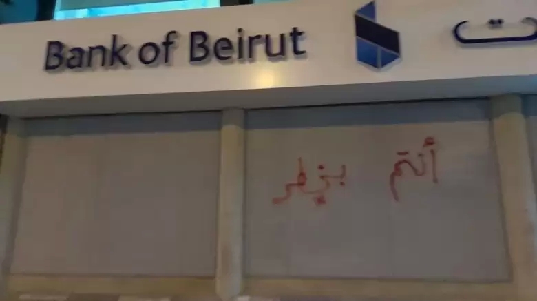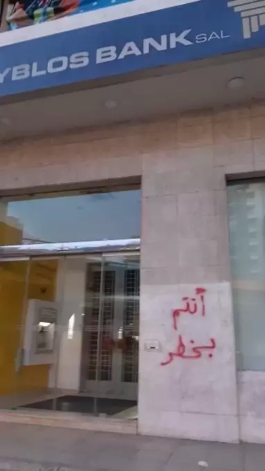 انتشر على مواقع التواصل الاجتماعي صور من جدران المصارف في منطقة الضاحية وكُتب عليها "أنتم بخطر" في رسالة موجهة للسياسة المصرفية المتبعة تجاه المودعين.
