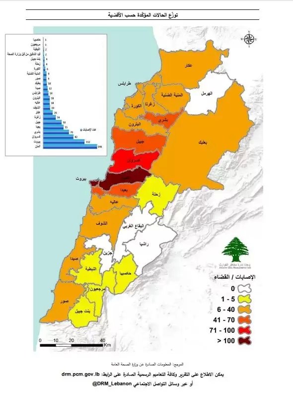 وبحسب التقرير فإن الأقضية التي سُجِّل فيها أكبر عدد من الإصابات بفيروس كورونا، جاءت كالتالي: