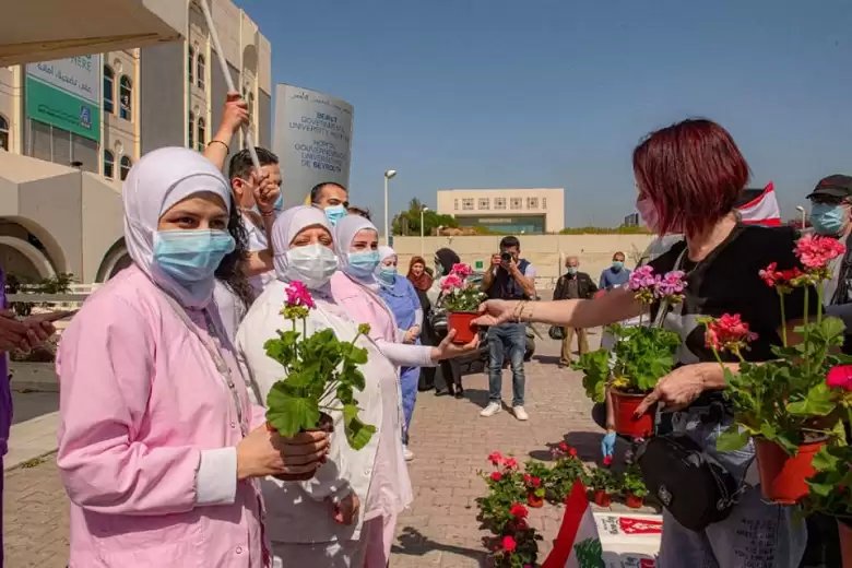 نشرت صفحة مستشفى رفيق الحريري الجامعي عبر فايسبوك صور لمجموعة من الناشطات والناشطين تقدمون الورود للفريق التمريضي في مستشفى الحريري في عيدهم إحتفالاً بمناسبة اليوم العالمي للتمريض.