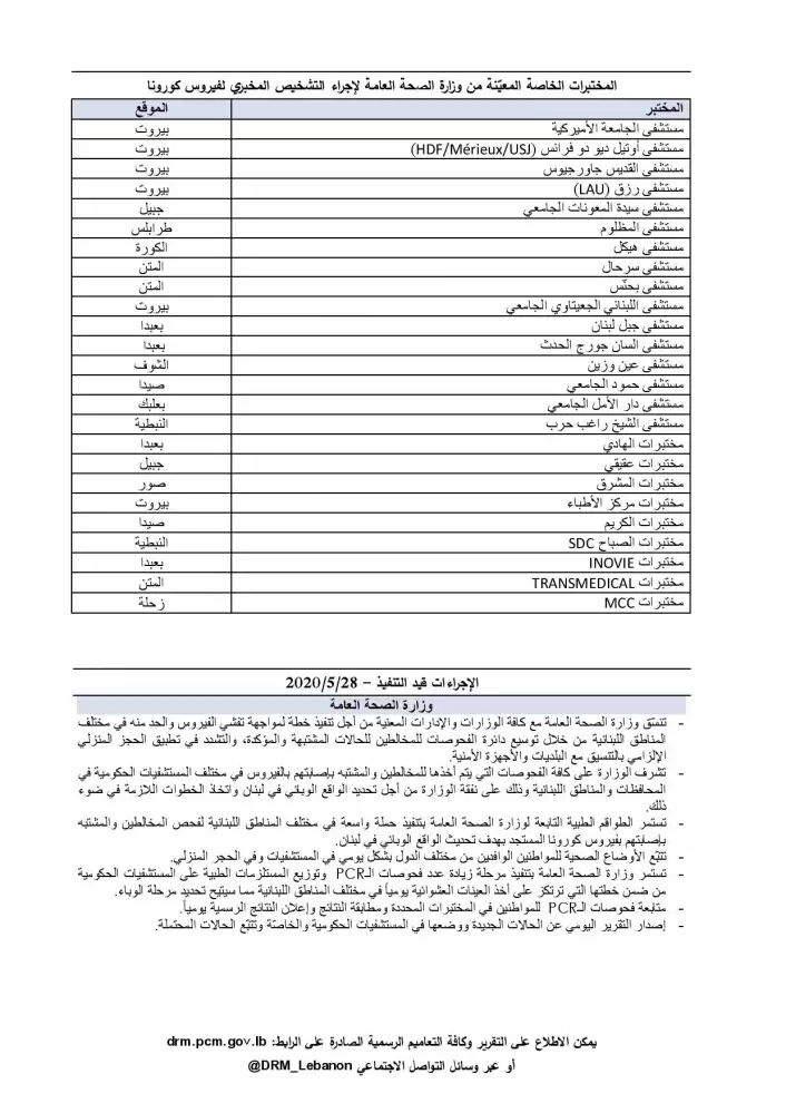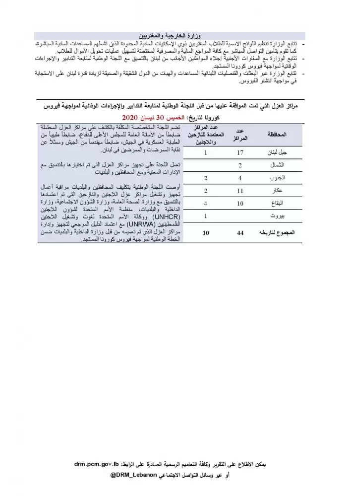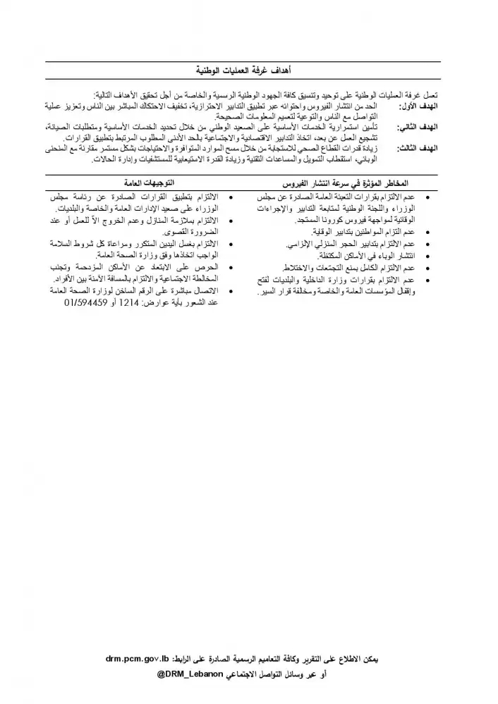 أصدرت غرفة العمليات الوطنية لإدارة الكوارث تقريرها اليومي حول وباء كورونا المستجد، وجاء فيه: