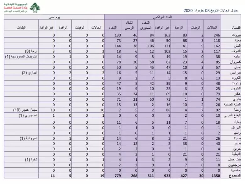 وكيفية توزيع الإصابات الـ 19 الجديدة على الأقضية والبلدات.