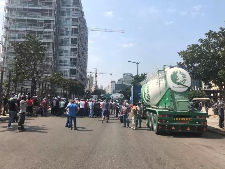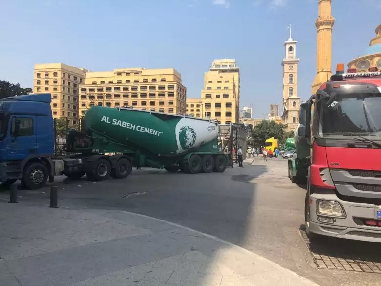 قطع سائقو الشاحنات والجبالات الطريق في وسط بيروت احتجاجا على عدم تشغيل المقالع والكسارات.