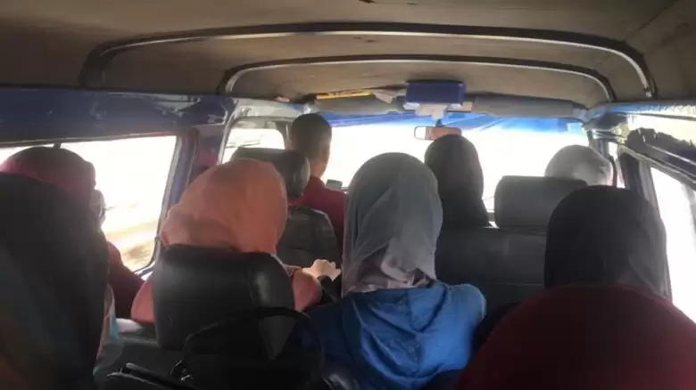 كما تظهر احدى الصور الاكتظاظ داخل أحد "الفانات" التي يستخدمها الطلاب للوصول الى كلياتهم.