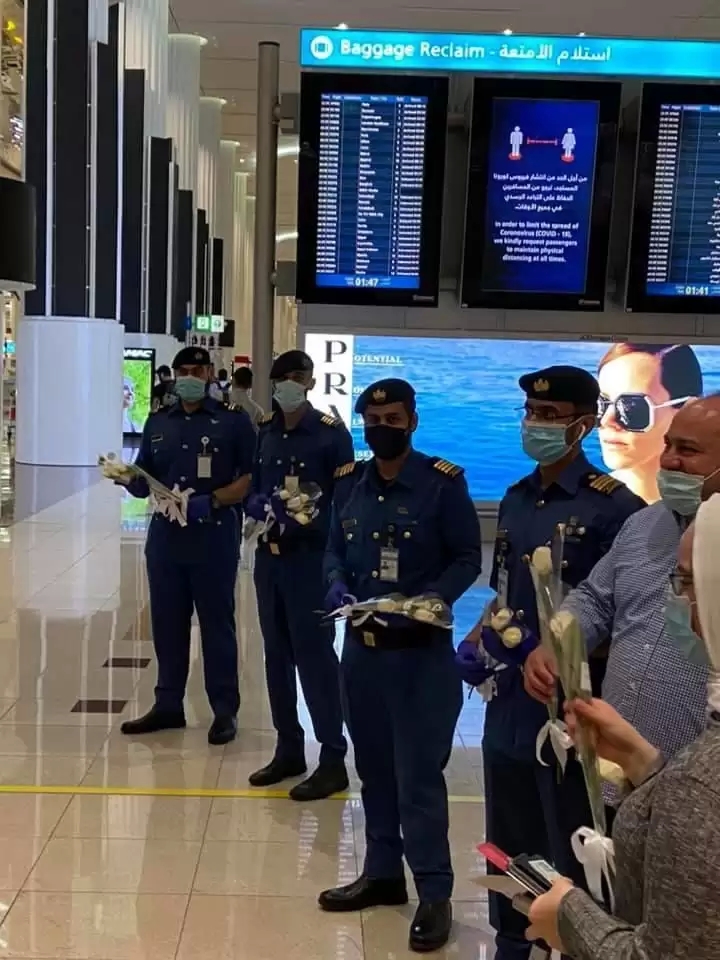 ببادرة مميزّة، سمحت السلطات في دبي أن يستخدم اللبنانيون العائدون الى الامارات الخطّ السريع في المطار، كما رحّب جهاز أمن المطار بعودتهم الى "منزلهم" وقدموا لهم الورود البيضاء مع رسالة "حمدالله على السلامة - عمار لبنان من عمار الامارات".