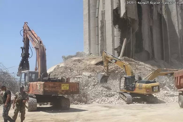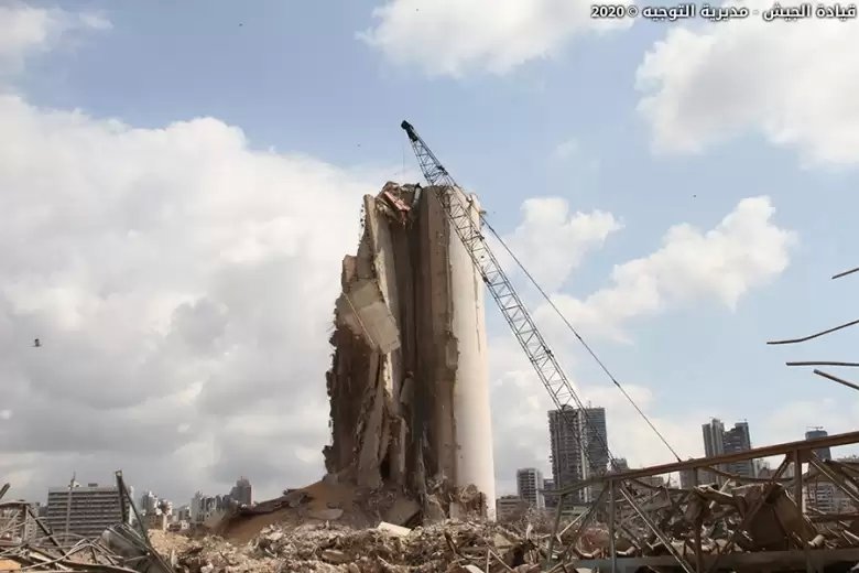 على صعيد آخر قام فريق متخصص من فوج الهندسة بإزالة ما تبقى من حائط الإهراءات المتصدع الموجود في بقعة عمل فريق الإنقاذ الروسي، نظراً للخطر الكبير الذي يشكله هذا الحائط على حياة عناصر الإنقاذ، الذين يواصلون العمل بهدف الوصول إلى غرفة عمليات الإهراءات الواقعة تحت الأرض، والتي يُتوقع العثور فيها على مفقودين.