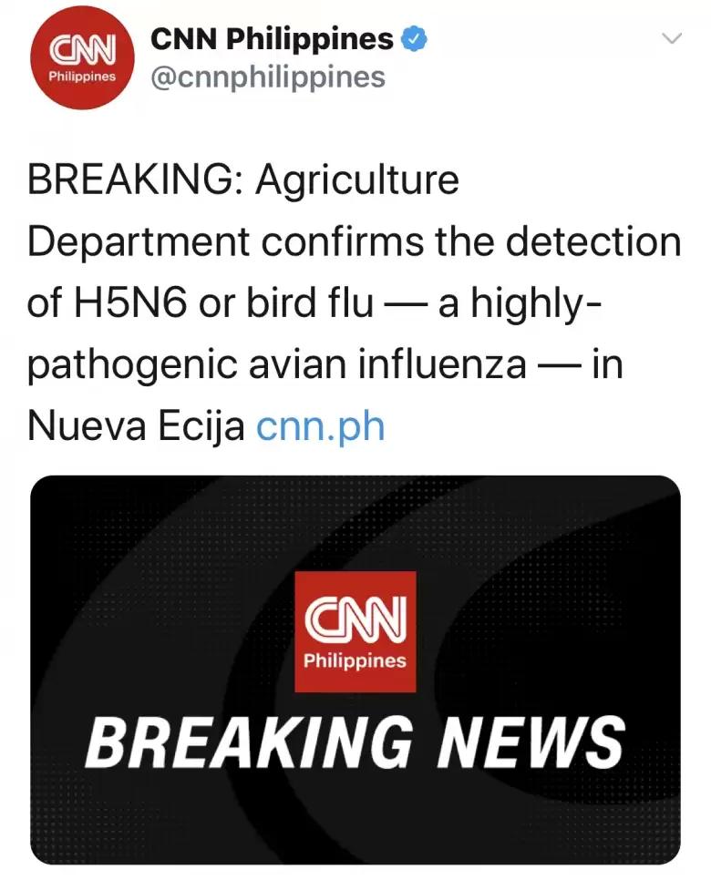 اعلنت شبكة cnn الامريكية قسم الفليبين انه تم إكتشاف نوع جديد من فيروس أنفلونزا الطيور H5N6 أشدّ فتكاً وانتشاراً من النوع السابق..
