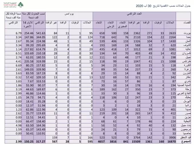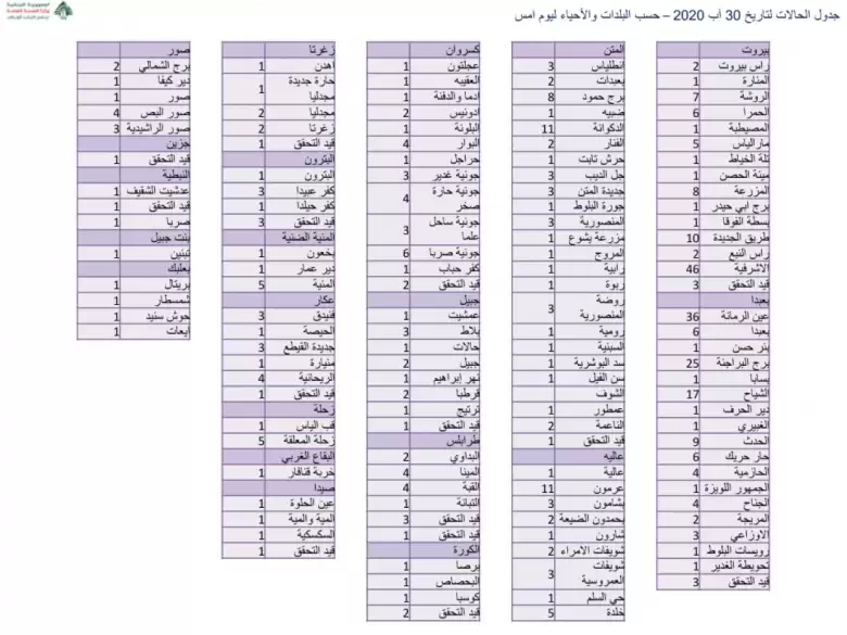 — Ministry of Public Health - Lebanon (@mophleb) August 30, 2020