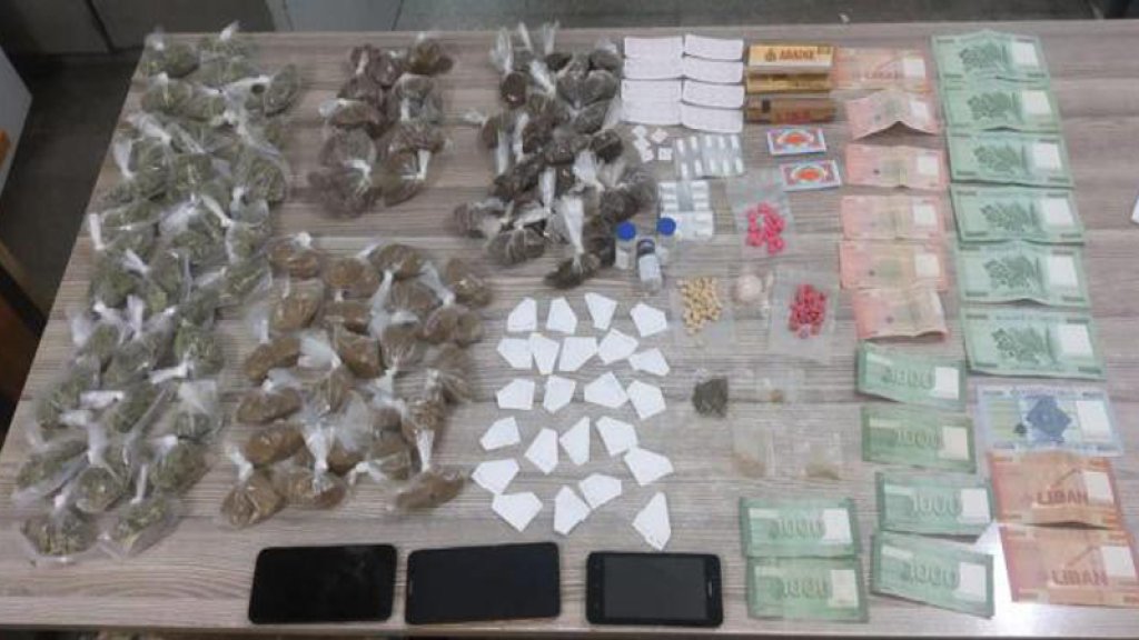 ضُبط بحوزته كمية من المخدّرات معدّة للترويج، وهي على الشكل التالي: