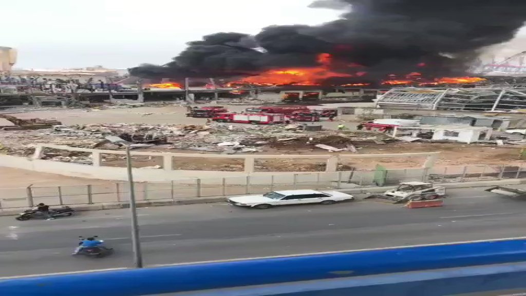 فرق الإطفاء تعمل على إخماد الحريق الكبير في مرفأ بيروت pic.twitter.com/GrNuN9fQ7s