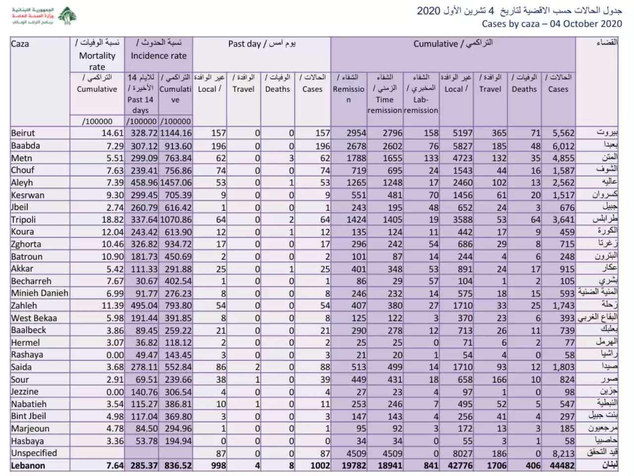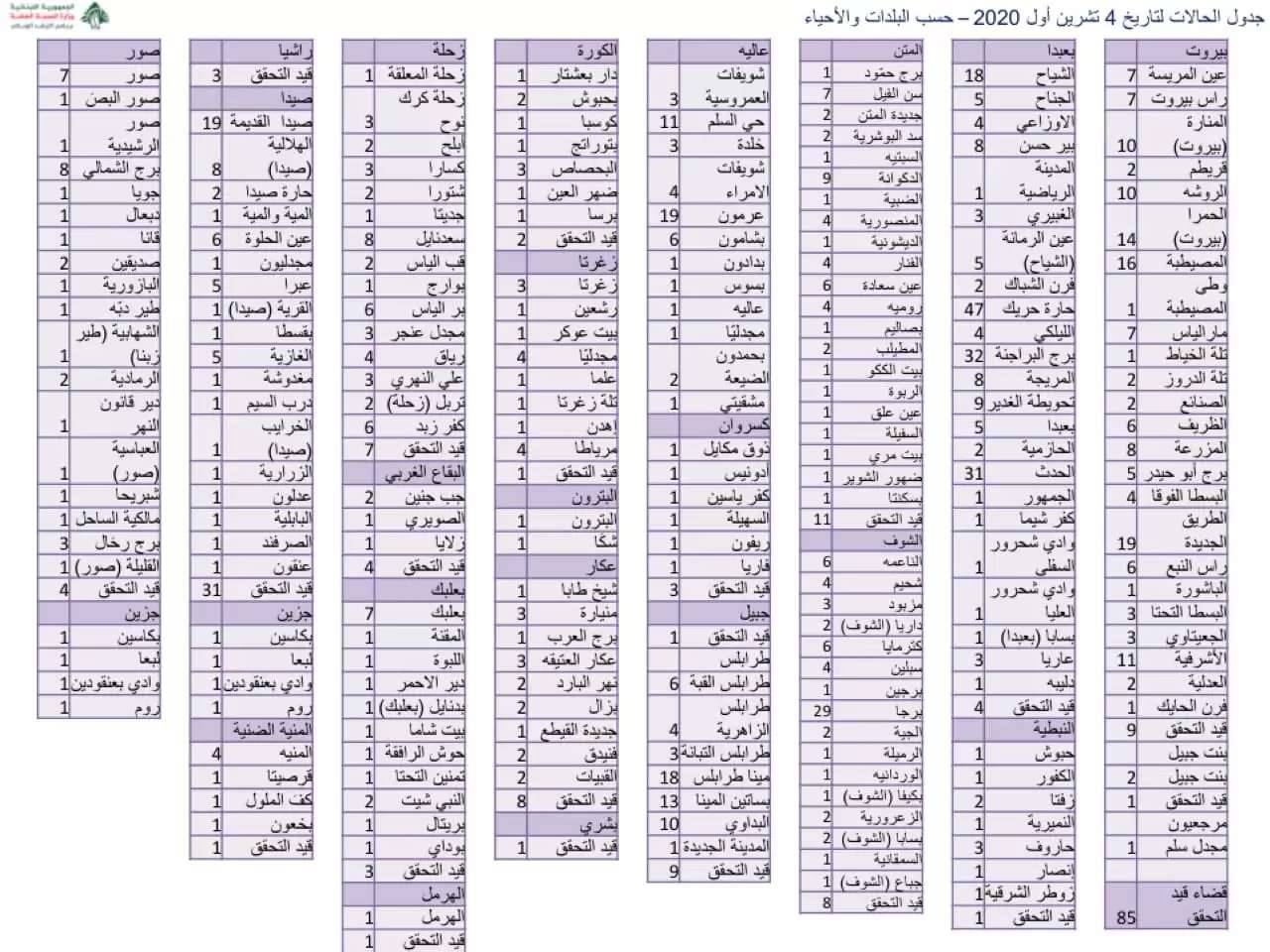— Ministry of Public Health - Lebanon (@mophleb) October 4, 2020