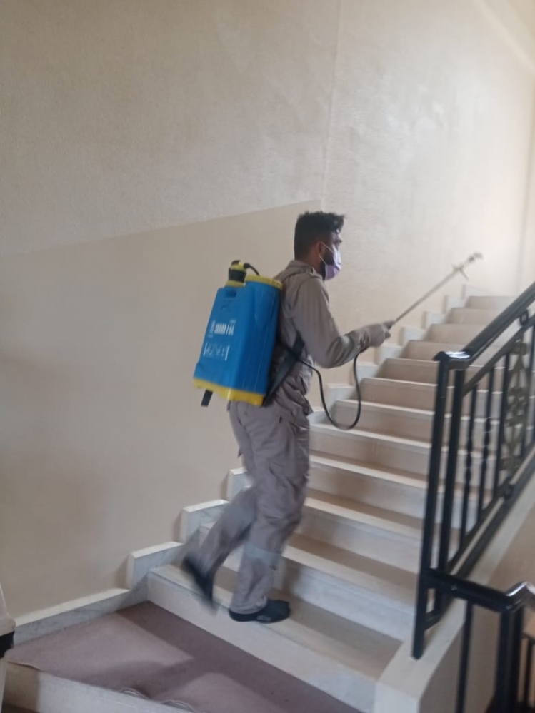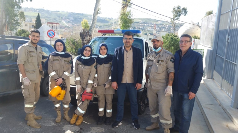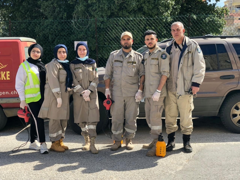 عقّمت كشافة الرسالة الاسلامية - فريق الدفاع المدني في حركة أمل المنازل والمؤسسات الرسمية والمدارس في مدينة بنت جبيل لليوم الثاني عشر على التوالي بفريق مكون من 10 اشخاص من ابناء المدينة.