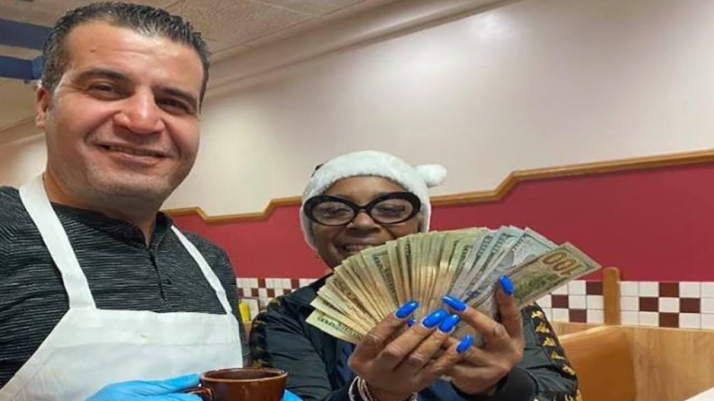 ولشدة سعادتها التقطت صورة مع بوصي، الذي رفض بدوره مشاركتها المبلغ، باعتباره هدية خاصة بها. وأرفقت الصورة بعبارة مفادها "أن تكون موظفاً جيداً لدى هذا الرجل...tips 1600$"! وقال بوصي لموقع بنت جبيل أن شباناً أميركيين ميسورين الحال قصدوا مطعمه، وتزامناً مع الأعياد، خططوا لمساعدة عائلة غير ميسورة، أو محدودة الدخل. وحين أعجبوا باهتمامها بعملها وباتقانها خدمة الزبائن، أجمعوا أن مبلغ الـ 1600$ من نصيبها.