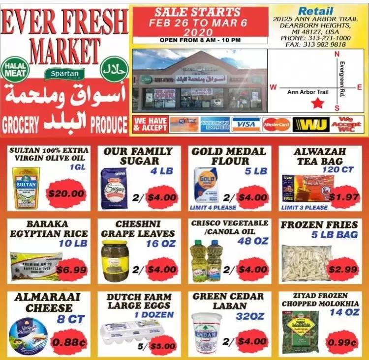 كعادتها تعلن أسواق البلد "Ever Fresh Market" في مدينة ديربورن هايتس الأميركية عن أحدث عروضاتها على مختلف السلع الغذائية.
