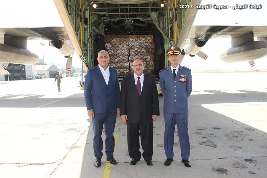 تسلّم الجيش في مطار بيروت الدولي، اليوم، هبةً من الأردن هي عبارة عن حوالى ٨ أطنان من المواد الطبية والغذائية، المقدّمة إلى المؤسسة العسكرية.