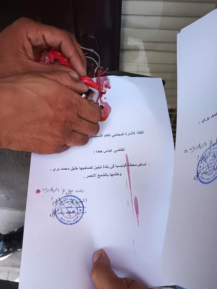 بعد انتشار خبر قيام احد أصحاب المحطات في بلدة تبنين ببيع تنكة البنزين بمبلغ ٧٥٠ الف ليرة و احياناً ٨٠٠ الف ليرة قامت دورية من مديرية النبطية - مكتب بنت جبيل بتسكير و ختم المحطة بالشمع الاحمر و يجري التحقيق مع صاحب المحطة باشراف القضاء المختص.