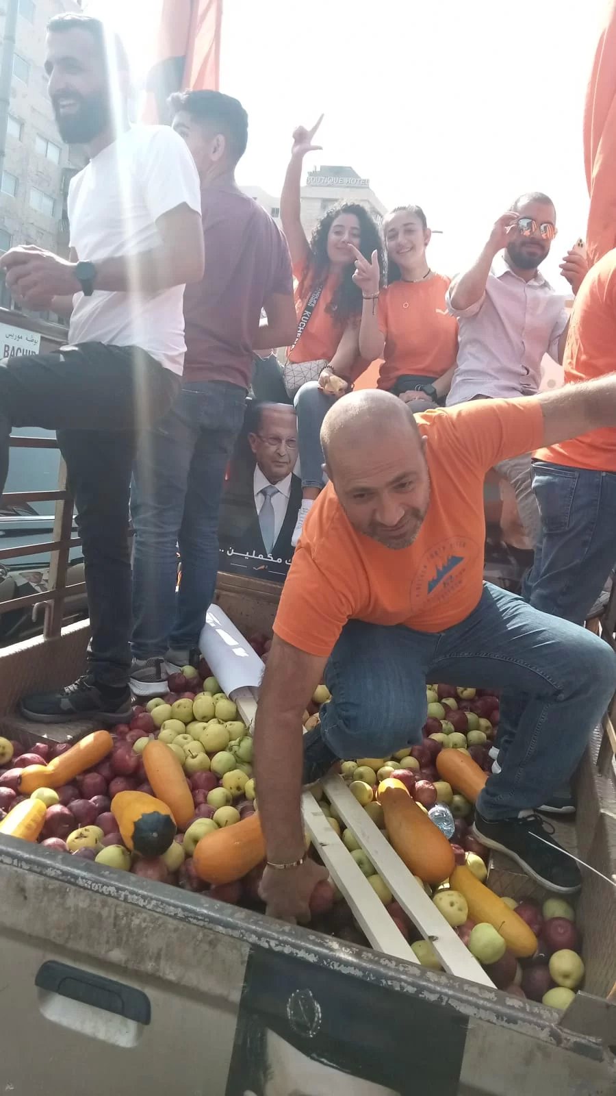 عمد عدد من مناصري التيّار الوطني الحرّ حراجل على توزيع التفاح على المارّين على اوتوستراد نهر الموت.