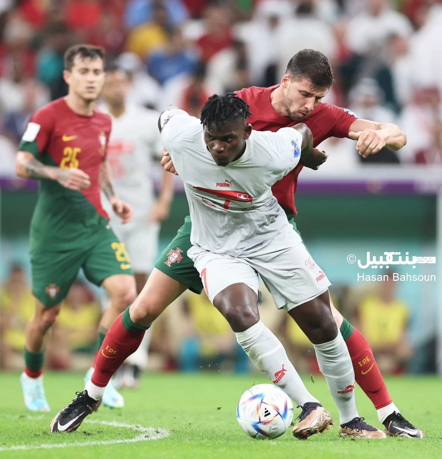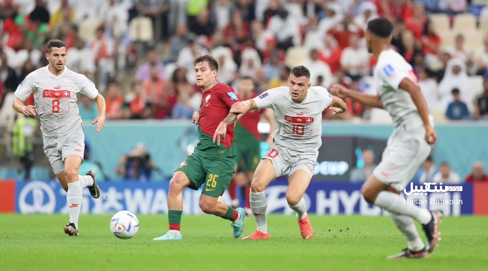 ورد مانويل اكانجي بتسجيل الاصابة السويسرية الاولى في الدقيقة 58 متابعا في المرمى البرتغالي كرة تلقاها من ضربة ركنية.