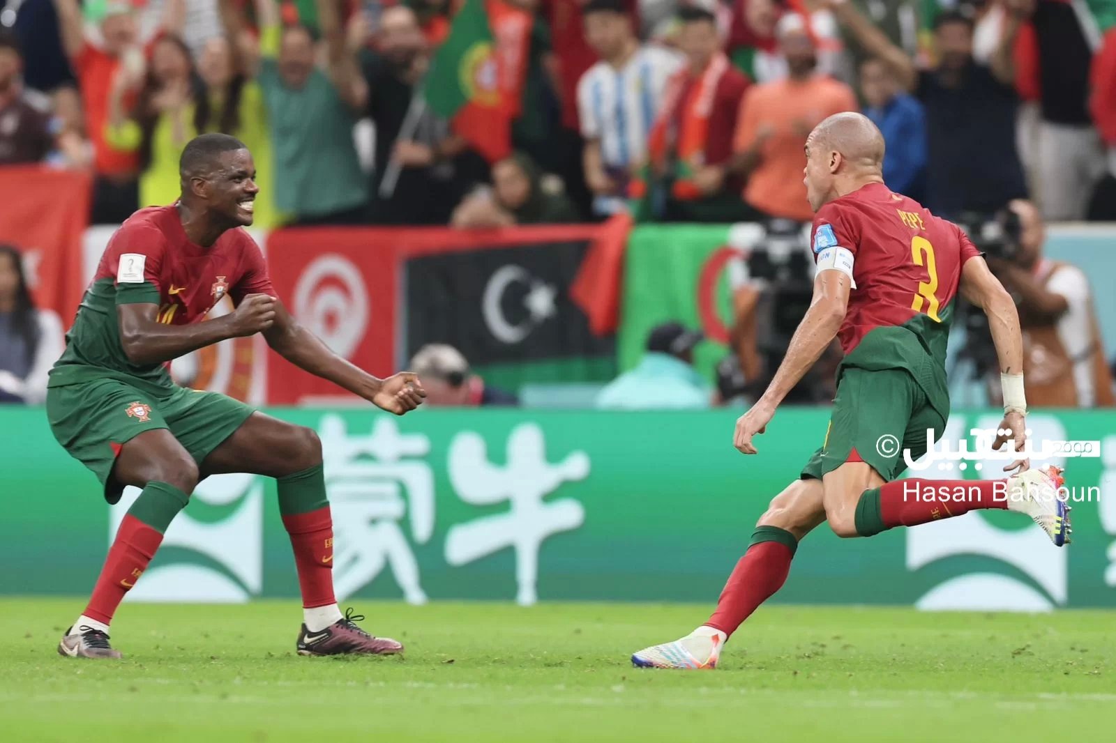 وتقدمت البرتغال سريعا بإصابتين في الشوط الاول عبر غونزالو راموس بكرة لعبها من زاوية ضيقة من داخل المنطقة الى المقص الايمن لمرمى الحارس يان سومير، والكابتن بيبي بكرة رأسية متطاولا لضربة ركنية في الدقيقتين 17 و33.
