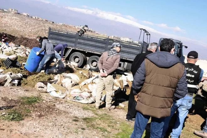 أتلف مكتب مكافحة المخدّرات الإقليمي في زحلة بتاريخ 18-1-2023 كميّات من المخدّرات المضبوطة لديه، وذلك في مكب رعيت للنفايات، بناءً على إشارة القضاء المختص، وبحضور كلٍّ من: النائب العام الاستئنافي في البقاع القاضي منيف بركات، رئيس قسم المباحث الجنائية العامة العقيد إيلي كلاس ومساعده العقيد نزيه قبرصلي، رئيس مكتب مكافحة المخدرات المركزي العقيد بشار الخطيب، رئيس مكتب مكافحة المخدّرات الإقليمي في زحلة المقدّم إلياس شلهوب، الرائد قاسم صفوان أحد ضباط شعبة العلاقات العامة، رئيس قلم النيابة العامة التمييزية الأستاذ ريمون قزحيا، وعدد من ضباط ورتباء المكتب.