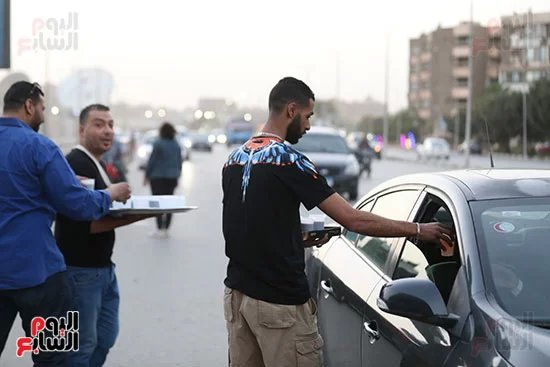 شهدت شوارع المعادي بمحافظة القاهرة قيام شباب متطوعين لإفطار المارة بتقديم العصائر والسوشى والحلويات.
