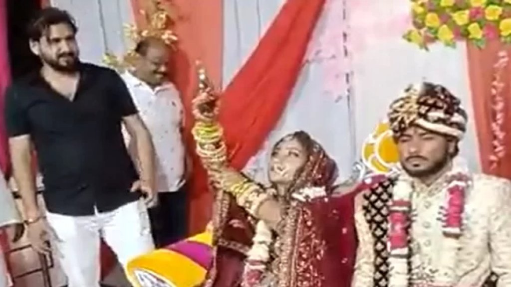 VIRAL VIDEO: In Uttar Pradesh's Hathras, bride fires 4 rounds of shots in the air during her wedding ceremony pic.twitter.com/bESwsxNpVW