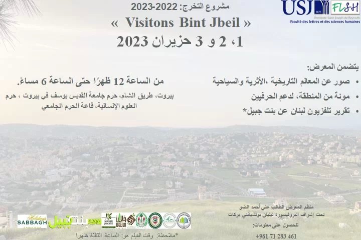 دعوة لحضور معرض "Visitons Bint Jbeil" لطالب في جامعة القديس يوسف في بيروت قدم مشروعه عن المدينة