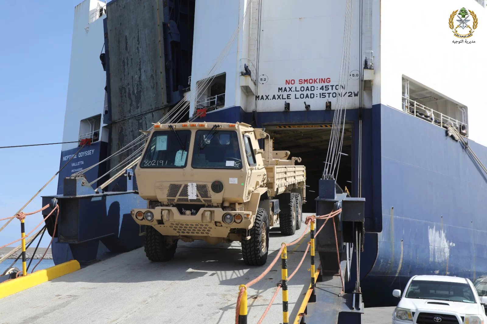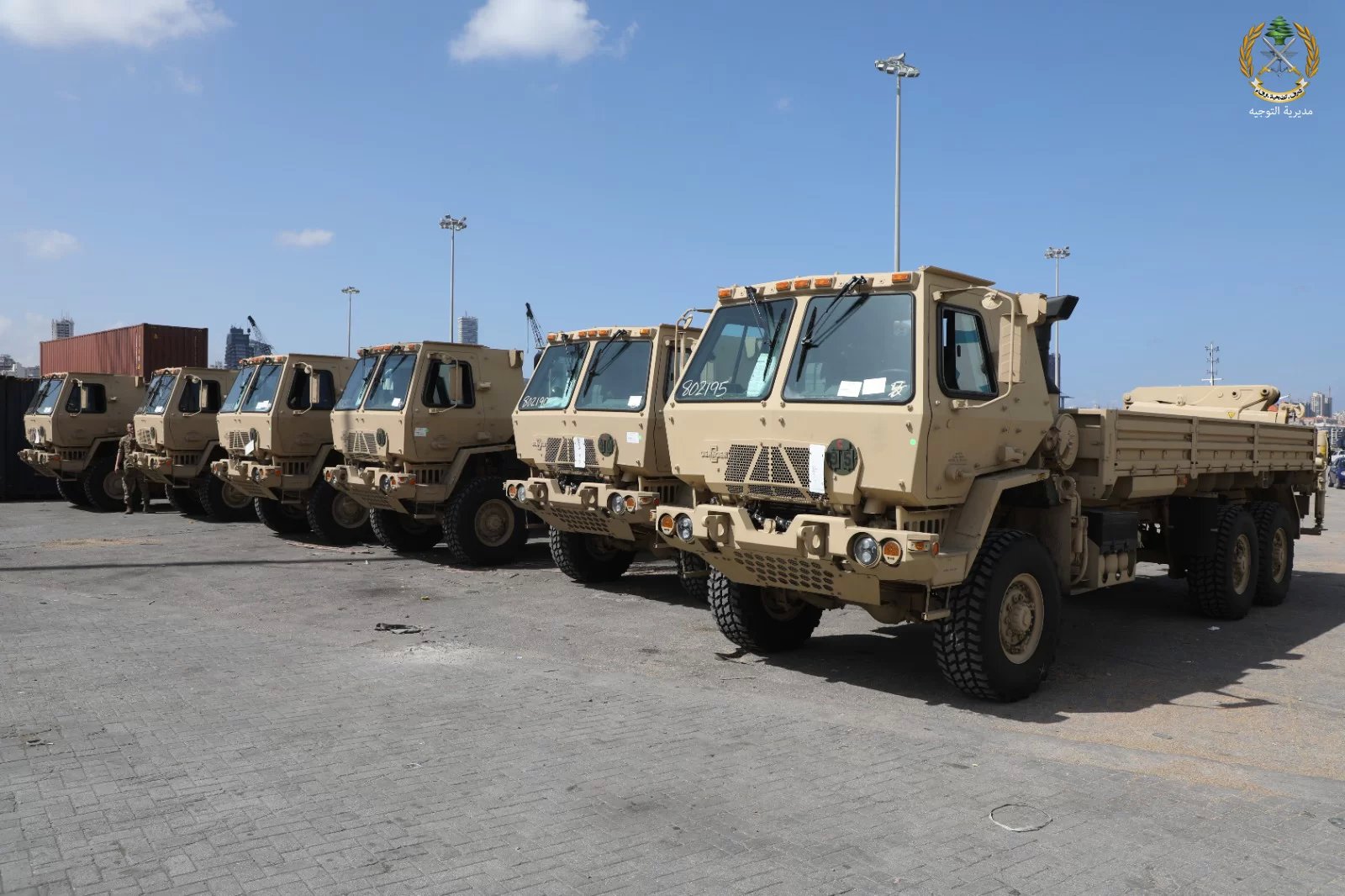 أعلن الجيش عبر"تويتر"، أنه "بتاريخ ۲۰۲۳/٥/١٩ ، وصلت إلى مرفأ بيروت باخرة محملة بخمس عشرة شاحنة عسكرية من ضمن برنامج الهبات الأميركية المخصصة للجيش اللبناني".