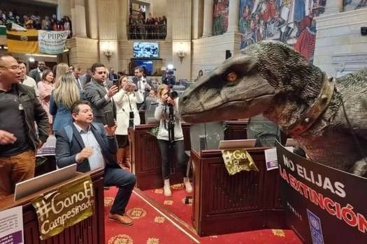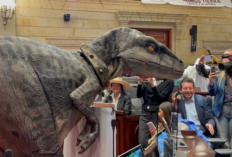 وأثناء مناقشة ملف الصحة فى الجلسة العامة لمجلس النواب الكولومبى، ظهر ديناصور فى الغرفة وقاطع الجلسة.