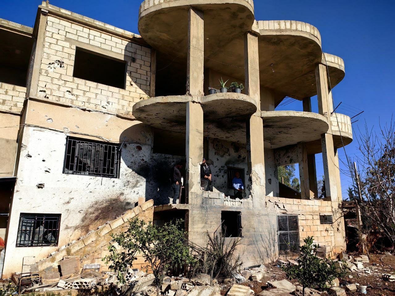 مكان استشهاد الأسيرة المحررة ناصيفة مزرعاني ونجلها محمد في بلدة حولا بعد استهدافه من قبل الإحتلال