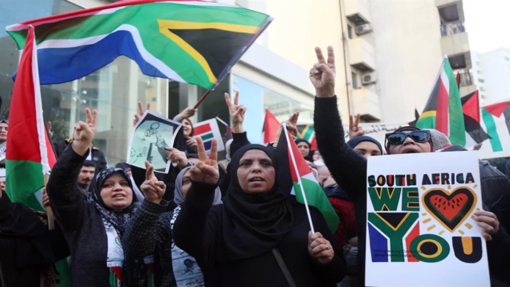 تحت عنوان «من جنوب أفريقيا إلى فلسطين: سنتحرّر معاً»، نُفّذت وقفة تضامنية أمس أمام مقرّ قنصلية جنوب أفريقيا في شارع قريطم في بيروت، بدعوة من 35 اتحاداً شبابياً ومنظمة مدنية ونقابة وجمعية، تأييداً للدعوى التي رفعتها جنوب أفريقيا ضد إسرائيل أمام محكمة العدل الدولية بتهمة ارتكاب إبادة جماعيّة بحق المدنيّين الفلسطينيّين في قطاع غزّة. ورفع المعتصمون أعلام جنوب أفريقيا وفلسطين، ورددوا شعارات مؤيّدة للمقاومة ضد العدو الصهيوني. وشدّد الداعون على ضرورة توسيع الحراك الشعبي في لبنان والمنطقة والعالم للضغط على حلفاء إسرائيل الذين يمارسون ضغوطاً على قضاة المحكمة، ولا يمارسون أي ضغط على الكيان الصهيوني لوقف حرب الإبادة.