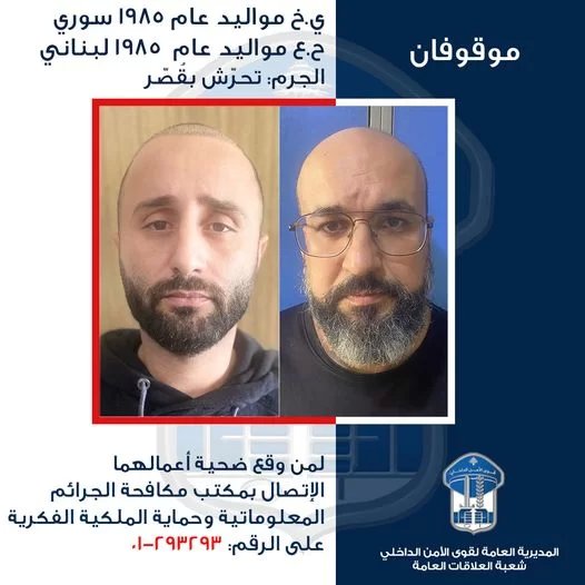 تُعمّم المديرية العامّة لقوى الأمن الداخلي، بناءً على إشارة القضاء المختص، صورة الموقوفَين: