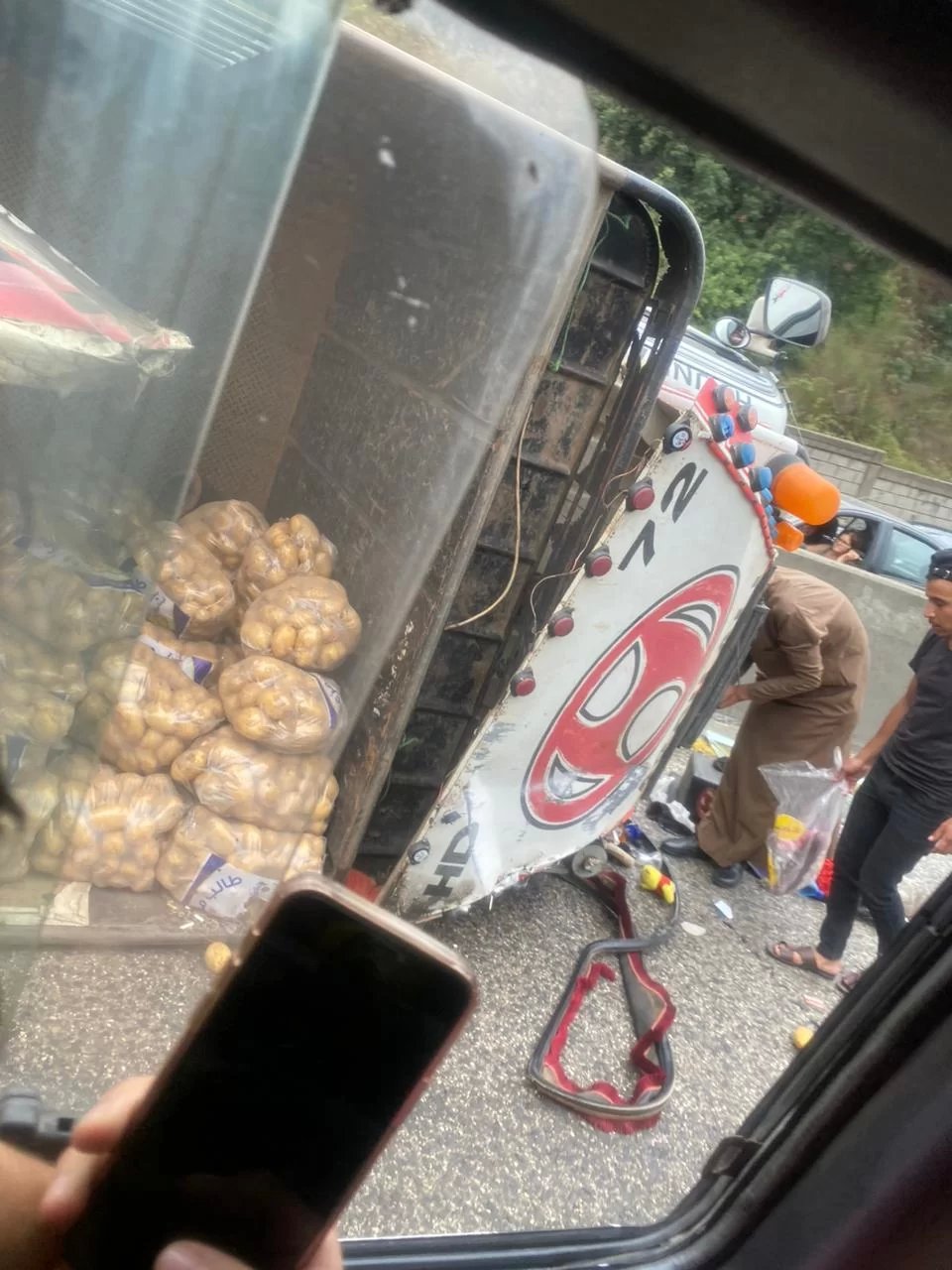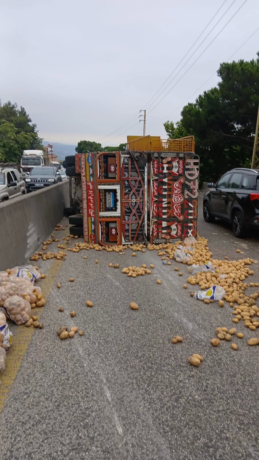 انقلبت شاحنة محملة بالبطاطا على طريق عام ضهر الوحش باتجاه الكحالة، ما تسبب بزحمة سير خانقة في المحلة.