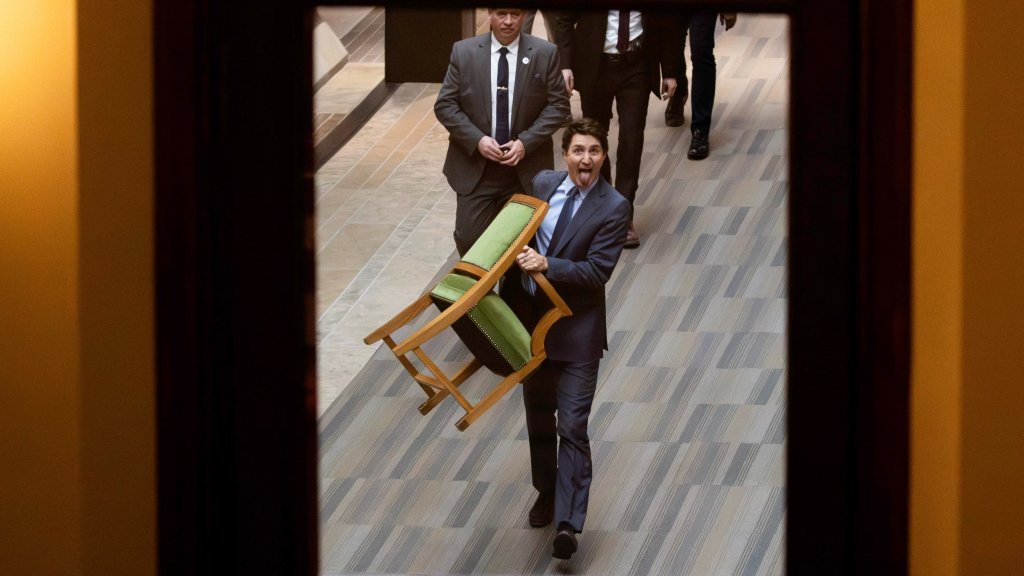 إلتقط مصور وكالة رويترز Carlos Osorio صورة غريبة لرئيس الوزراء الكندي جاستن ترودو عند خروجه من البرلمان وهو يحمل كرسيه ومخرجًا لسانه، وذلك عقب لقائه محافظ البنك المركزي السابق مارك كارني والذي حقق فوزًا ساحقًا ليصبح زعيم الحزب الليبرالي الحاكم في كندا ورئيس الوزراء القادم للبلاد.