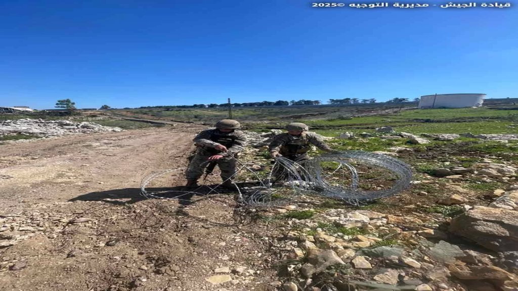 بتاريخ 12 / 3 / 2025، عملت وحدة من الجيش على إزالة شريط شائك في منطقة بركة ريشا في الجنوب بعدما وَضَعَه مؤخرًا عناصر تابعون للقوات الإسرائيلية المعادية داخل الأراضي اللبنانية.