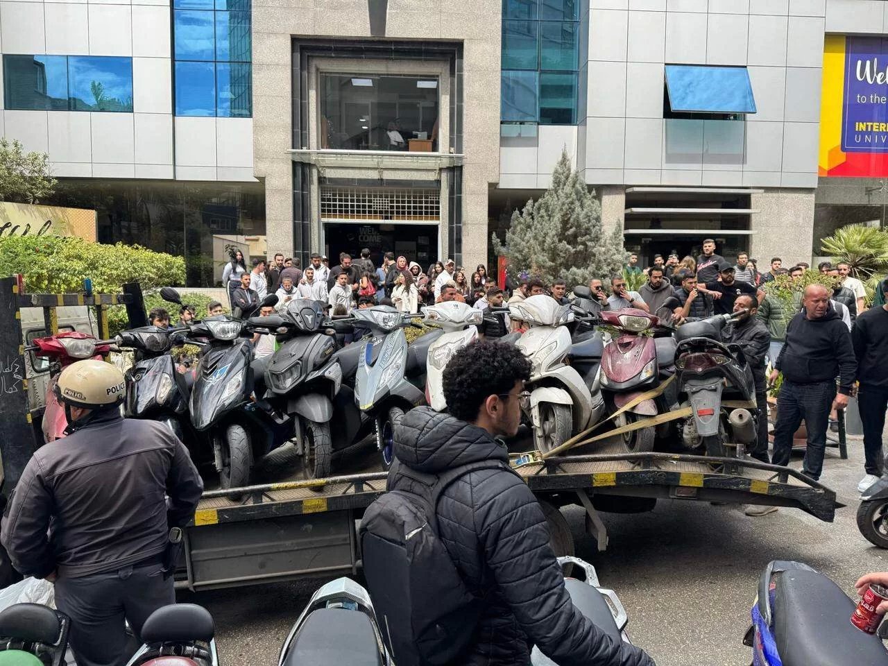 إنتشر عبر مواقع التواصل الإجتماعي صور لعناصر من قوى الأمن يقومون بحجز دراجات نارية عائدة لطلاب كانت مركونة إلى جانب الأرصفة أمام الجامعة اللبنانية الدولية على طريق سليم سلام.