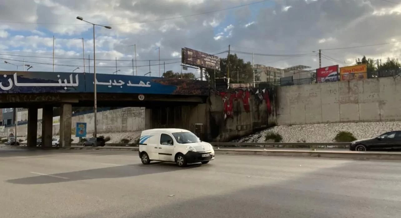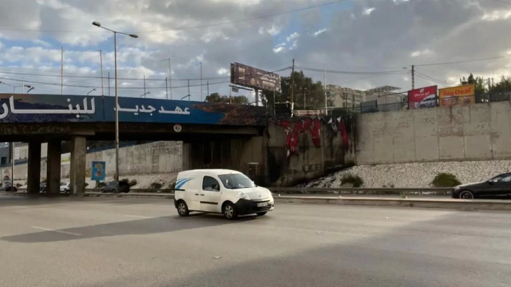 أقدم مجهولون على احراق لافتات "عهد جديد للبنان" على طريق مطار بيروت.