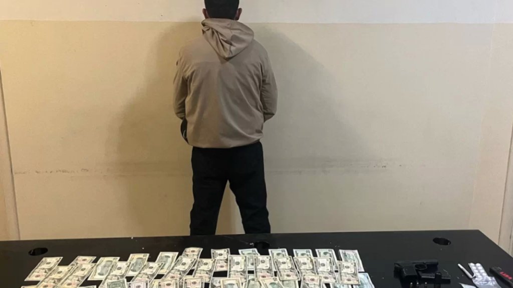 كما ضبط بحوزته سلاح حربي ومواد مخدرة ومبالغ مالية.