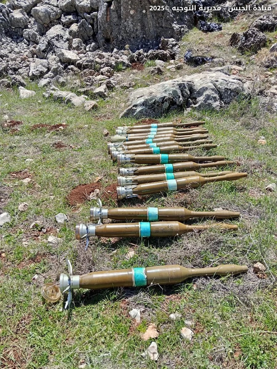 "بعد عمليات الرصد والمتابعة الأمنية، ضبطت وحدة من الجيش تؤازرها دورية من مديرية المخابرات في خراج بلدة عيحا مرج التوت – راشيا كمية من الصواريخ والأسلحة والذخائر الحربية وأجهزة التفجير.