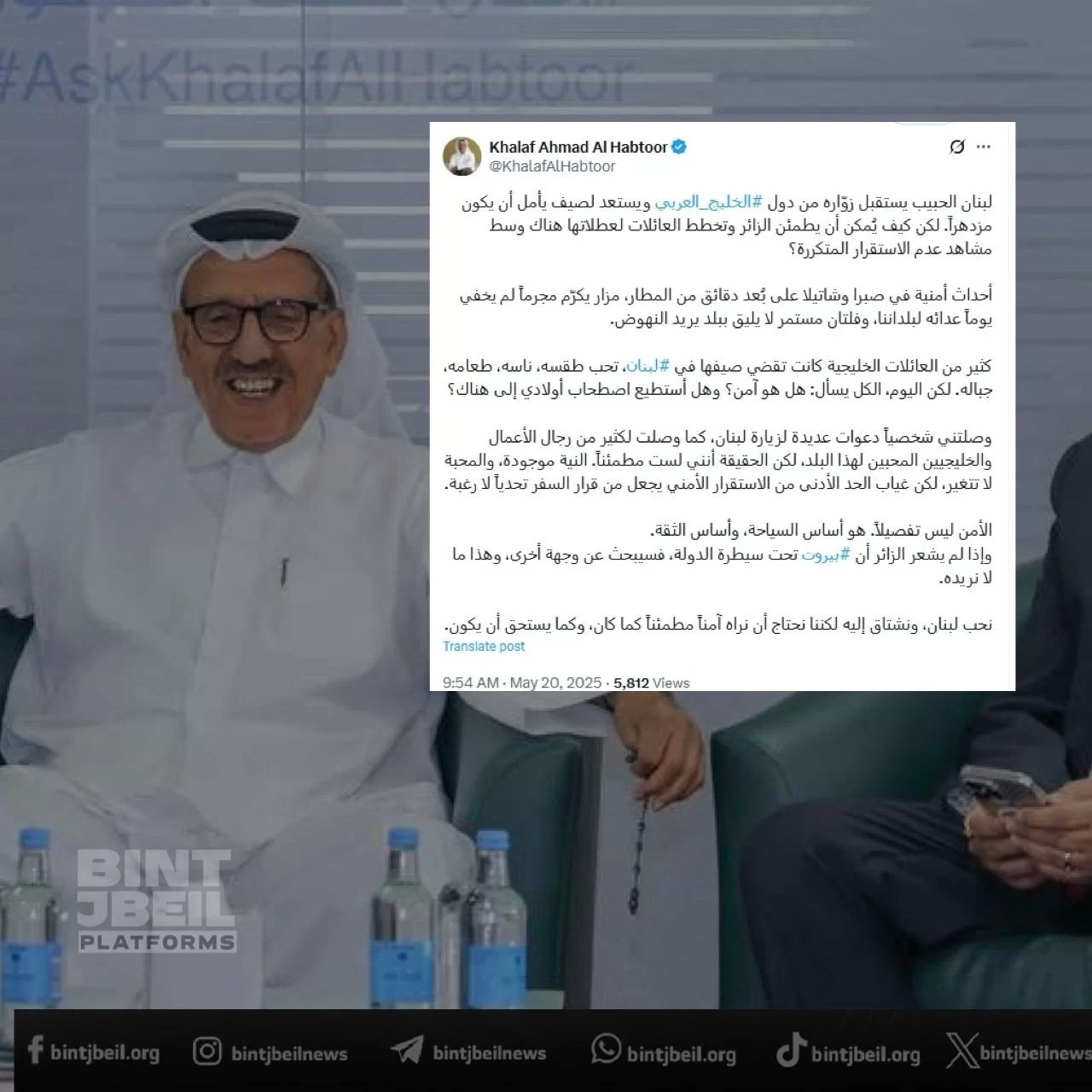 مع بدء موسم الصيف والسياحة، صرّح الملياردير خلف الحبتور عن لبنان ولكن هذه المرة بصفة "خبير أمني"، حيث قام بتوزيع تقييماته الأمنية ودسّ الدعاية السلبية والسوداوية.. لا يكفّ الحبتور عن إظهار نفسه كمحبٍّ وفيٍّ للبنان ولكنه لا يتردد في نشر الدعاية السيئة على عكس دولة الإمارات التي دعت مواطنيها إلى زيارة لبنان مؤخراً.