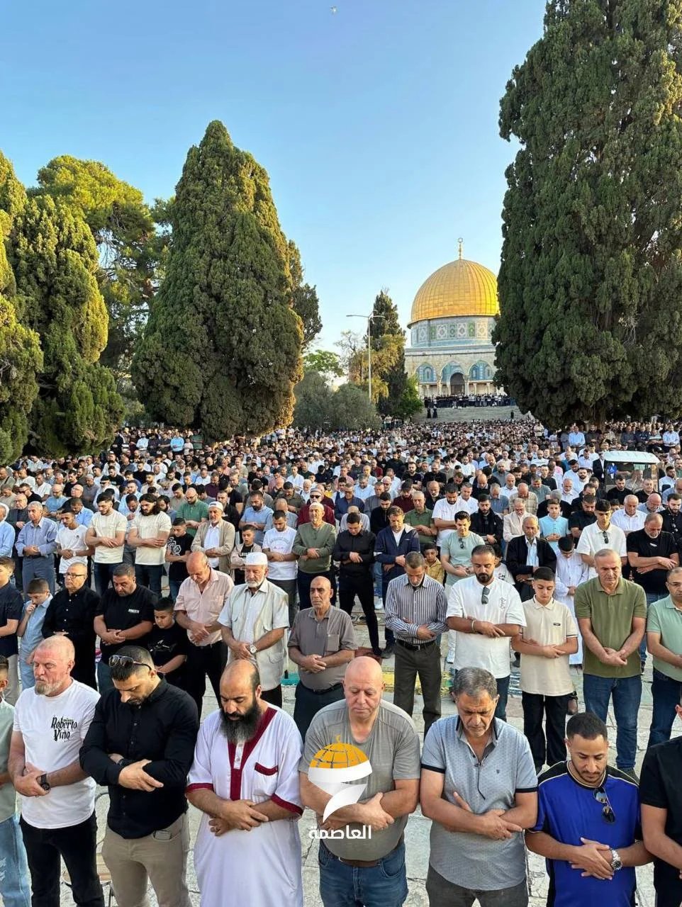 أدى عشرات آلاف المصلين صلاة العيد في المسجد الأقصى المبارك، رغم تضييقات وتشديدات قوات الاحتلال في أول أيام عيد الأضحى.