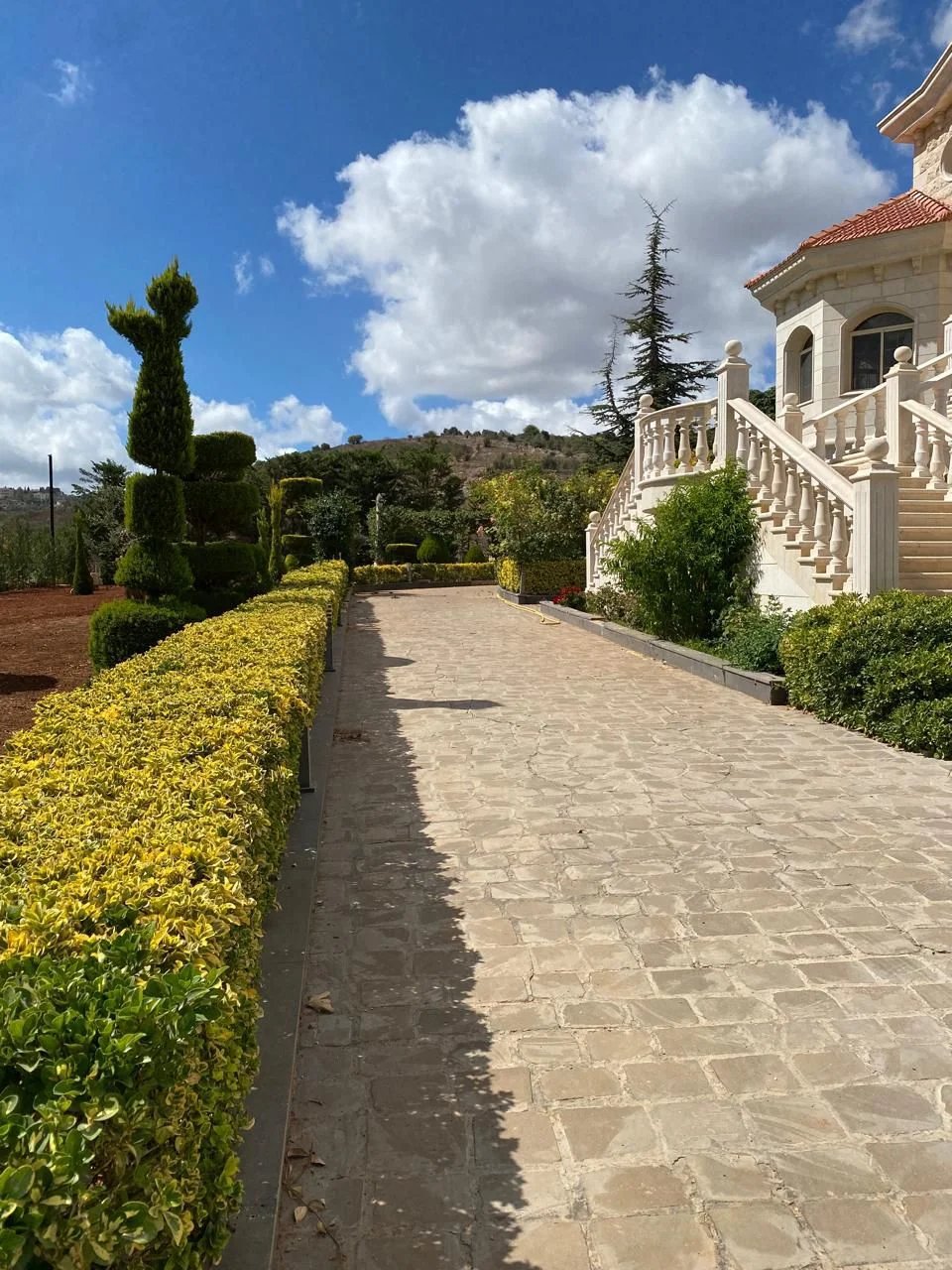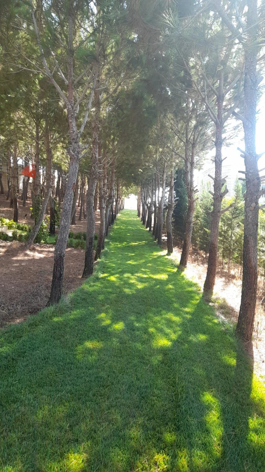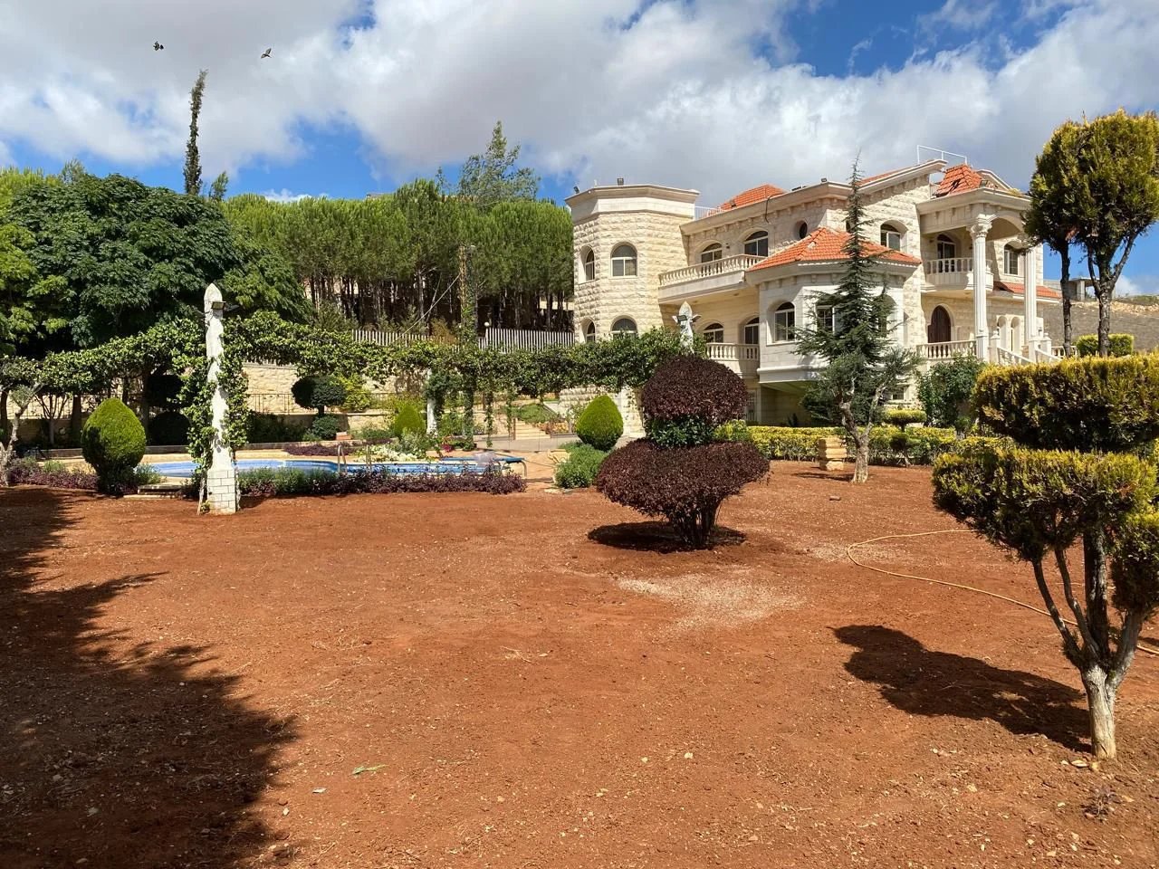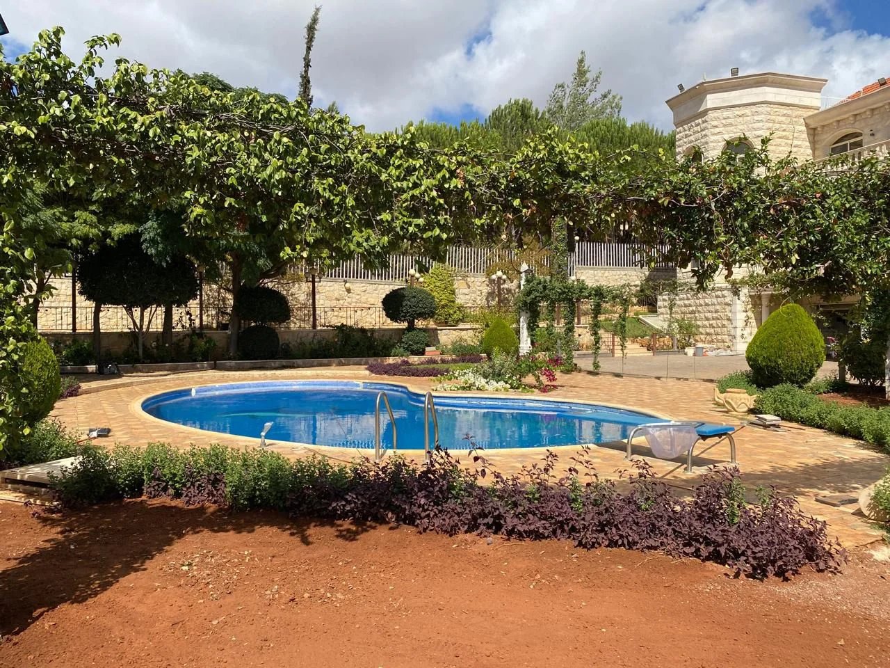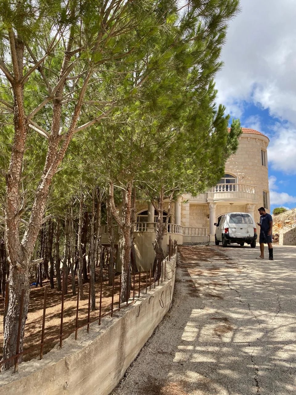 كما يتضمن العقار حرشا كبيرا مشجر بالصنوبر وأشجار زيتون وفواكة مع حديقة ومسبح.