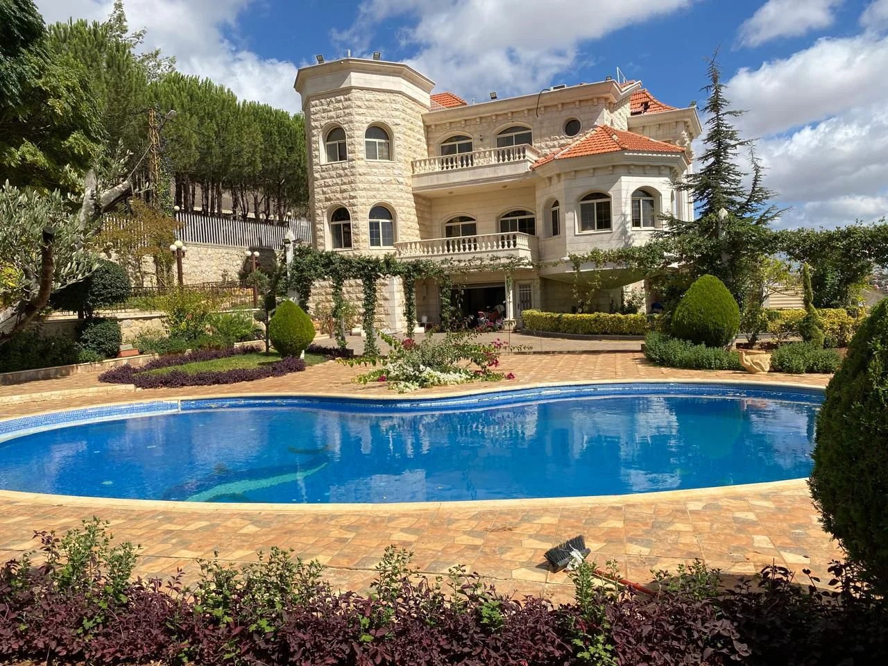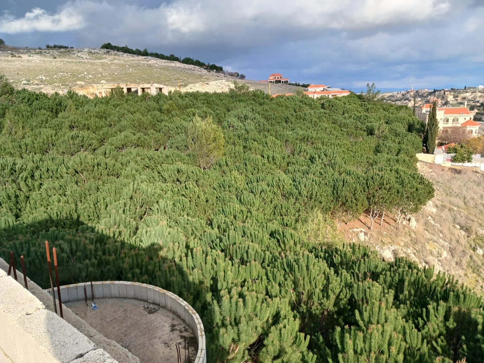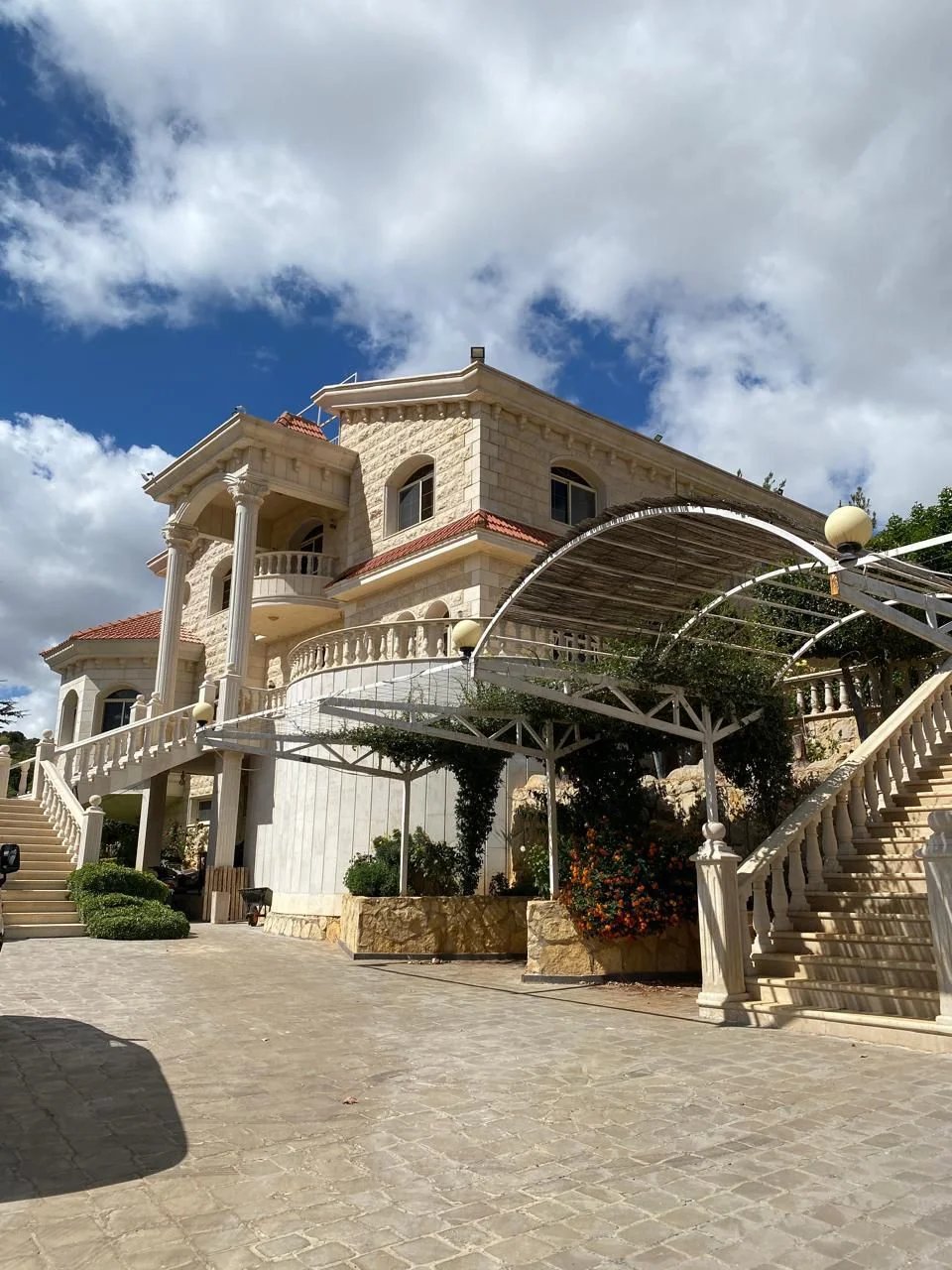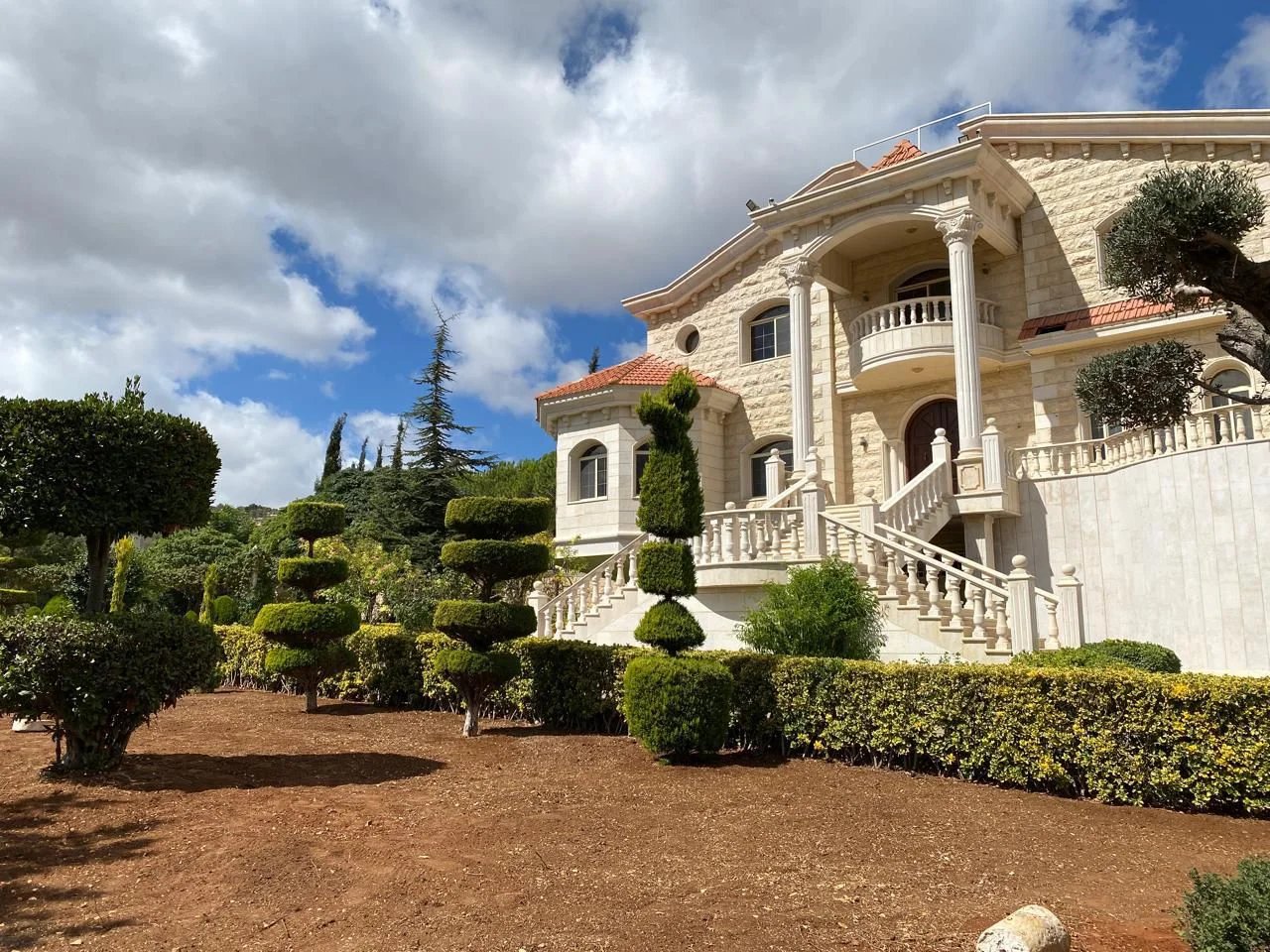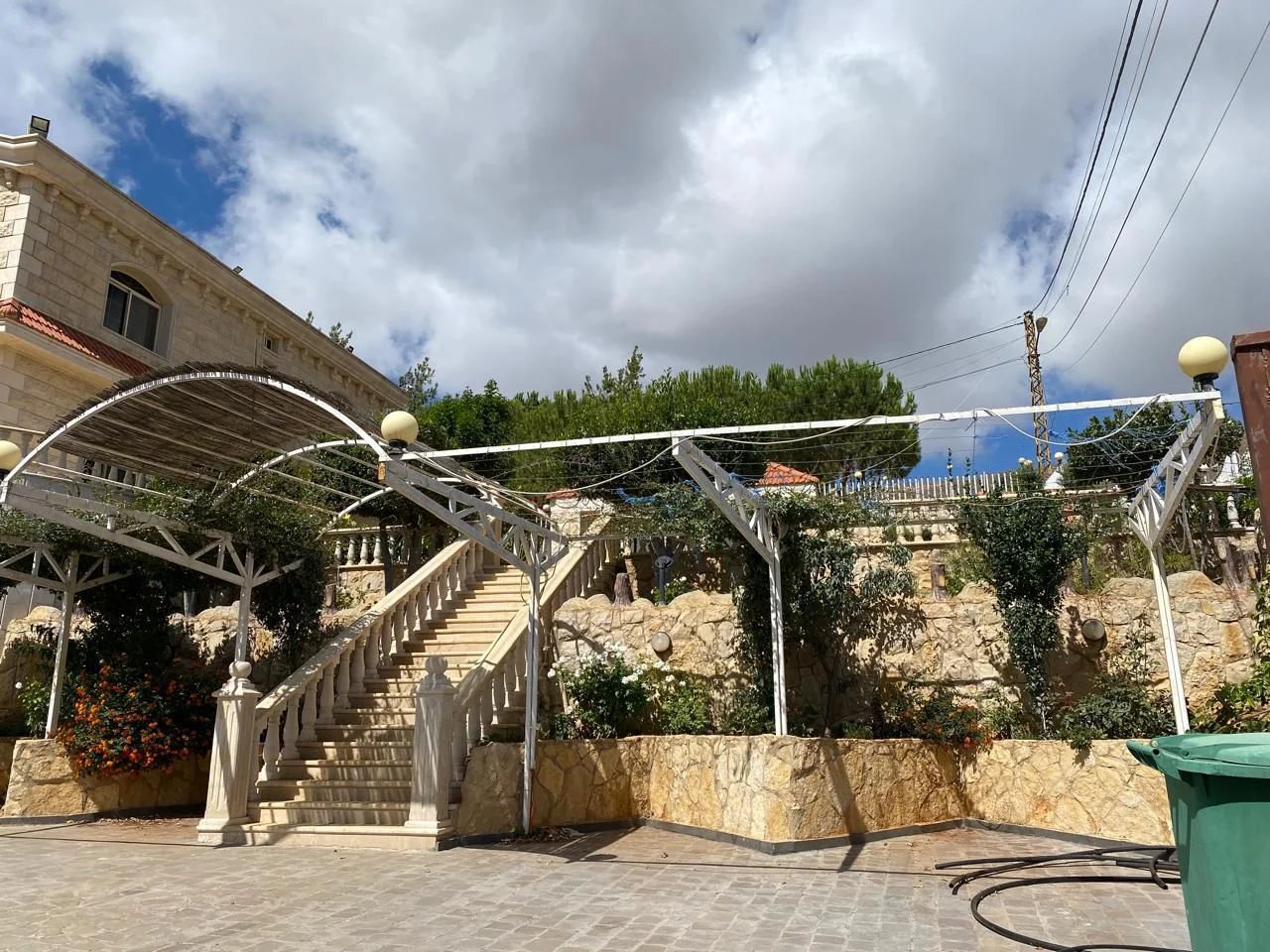 كما يتضمن العقار حرشا كبيرا مشجر بالصنوبر وأشجار زيتون وفواكة مع حديقة ومسبح.
