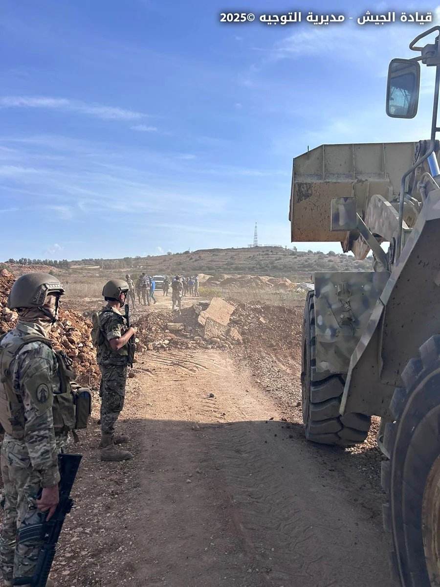 بتاريخ 20 /10 /2025 وضمن إطار متابعة الخروقات والاعتداءات الاسرائيلية المتكررة، عملت وحدة من الجيش بالتنسيق مع قوة الأمم المتحدة المؤقتة في لبنان – اليونيفيل على إزالة عدد من المكعبات الإسمنتية والسواتر الترابية التي كان العدو الإسرائيلي قد أقامها بتاريخ 19 /10 /2025 ليلاً في خراج بلدة عيترون – بنت جبيل، لقطع طريق في البلدة ومنع الأهالي من الوصول إلى أراضيهم.