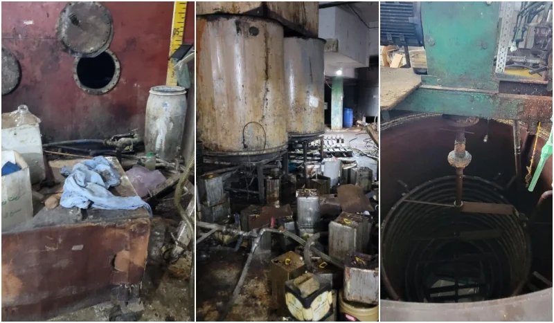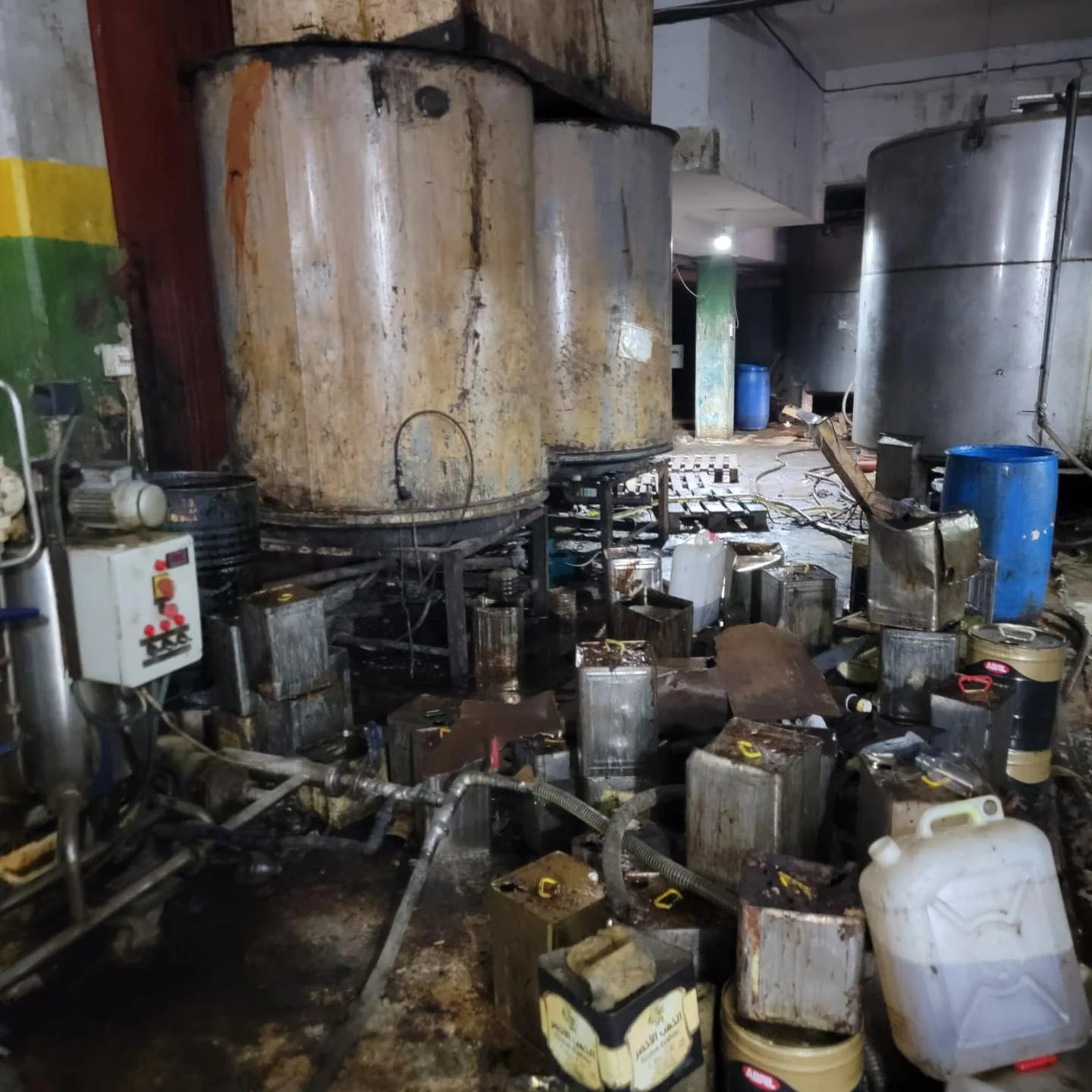 وخلال الكشف الميداني، تبيّن أن المعمل يستخدم عدة ماركات مختلفة من الزيوت، كما أنه لا يستوفي أدنى شروط النظافة والسلامة العامة. وقد تم ضبط مخالفات واضحة في أساليب التحضير والتوضيب داخل المعمل.