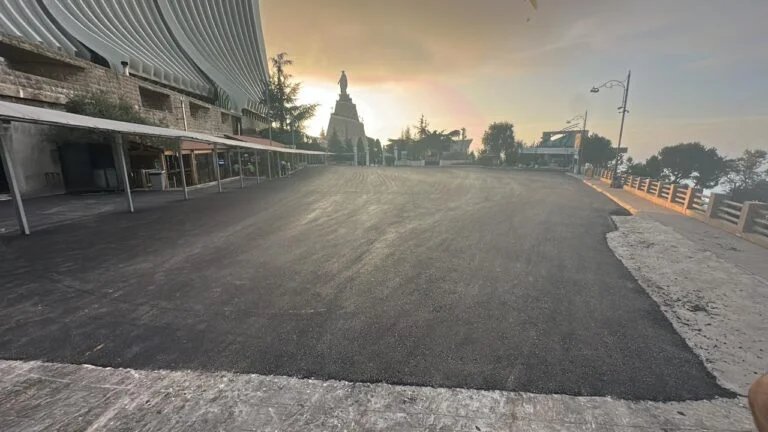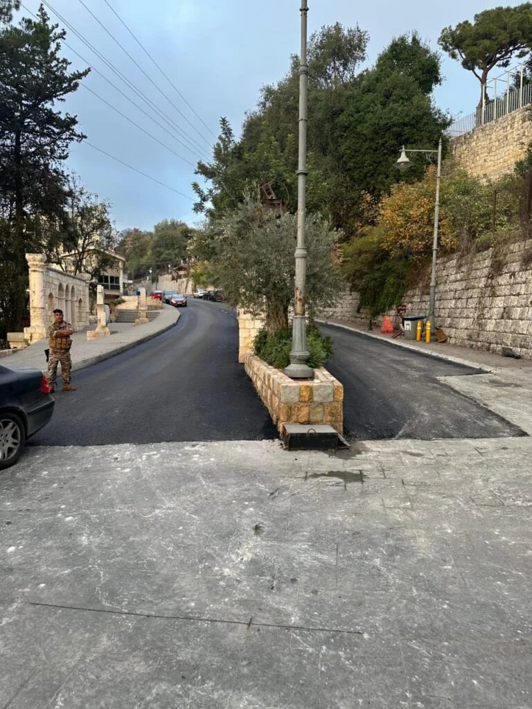 تُنفَّذ أعمال تزفيت شاملة تمتدّ من محيط مطعم اللقيس حتى مدخل الدير، تعزيزًا للسلامة المرورية وتسهيلًا لحركة الوصول.