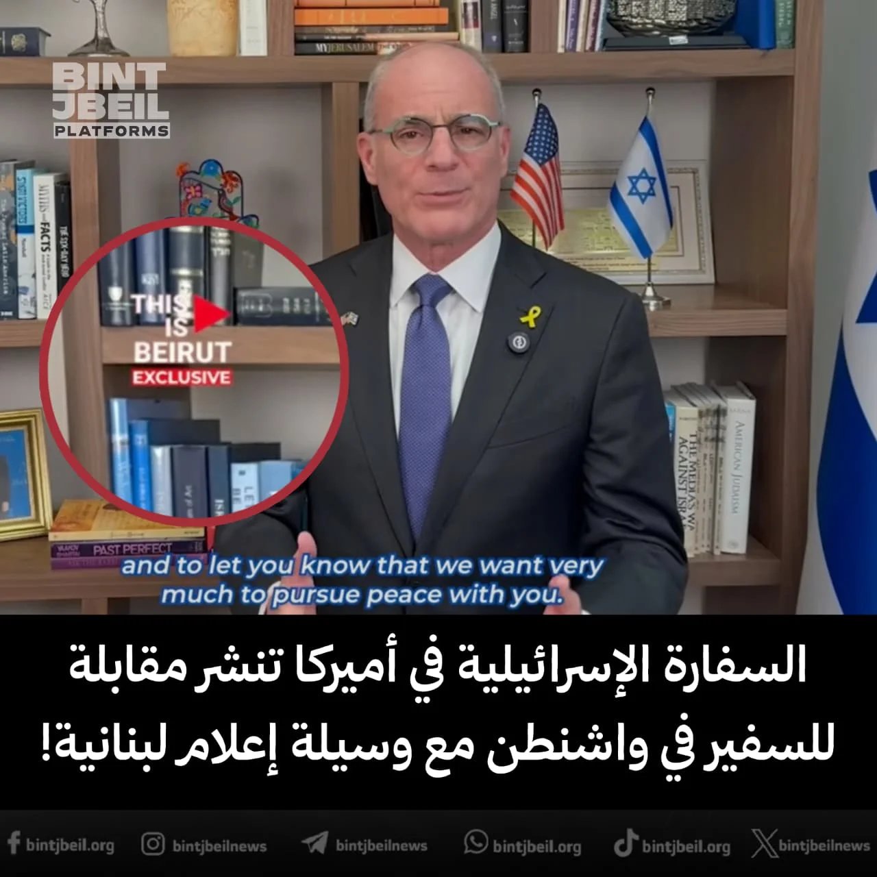 السفارة الإسرائيلية في أميركا تنشر مقابلة للسفير في واشنطن مع وسيلة إعلام لبنانية! تتمة...