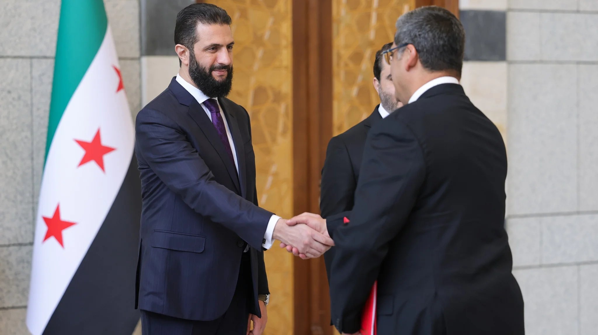تسلم الرئيس السوري الانتقالي أحمد الشرع، اليوم في قصر الشعب بدمشق، أوراق اعتماد السفير هنري قسطون، سفير الجمهورية اللبنانية لدى الجمهورية العربية السورية، بحضور وزير الخارجية السوري أسعد الشيباني.